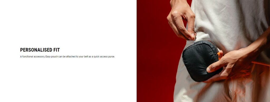 A functional accessory, Easy pouch can be attached to your belt as a quick access purse.