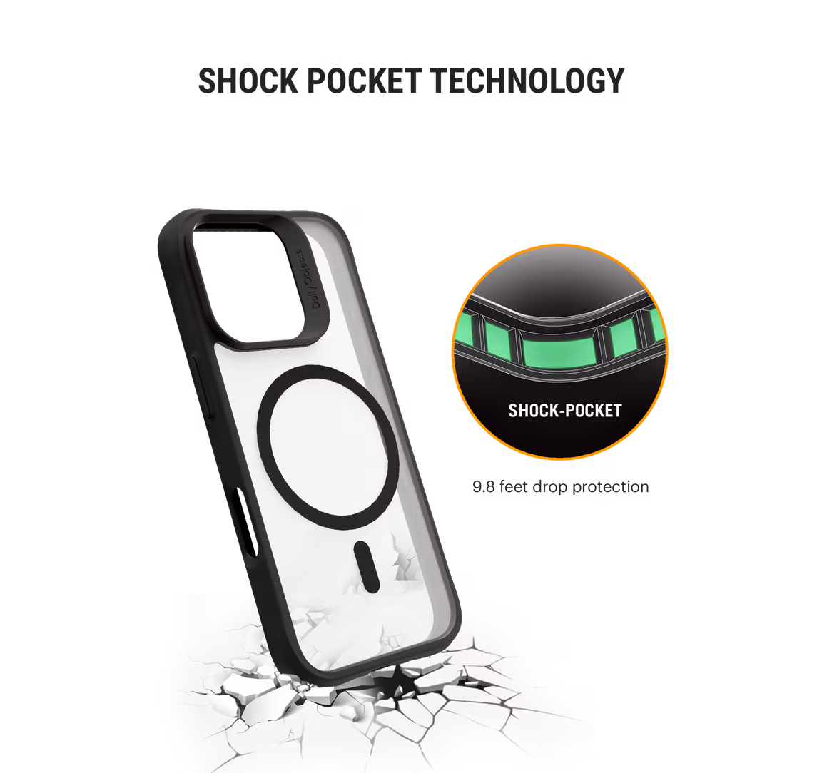 Tested for drop-safety at a 9.8 feet, it ensures heavy-duty safeguarding against falls. The shockproof airbags stationed at the corners deliver comprehensive coverage against impacts.