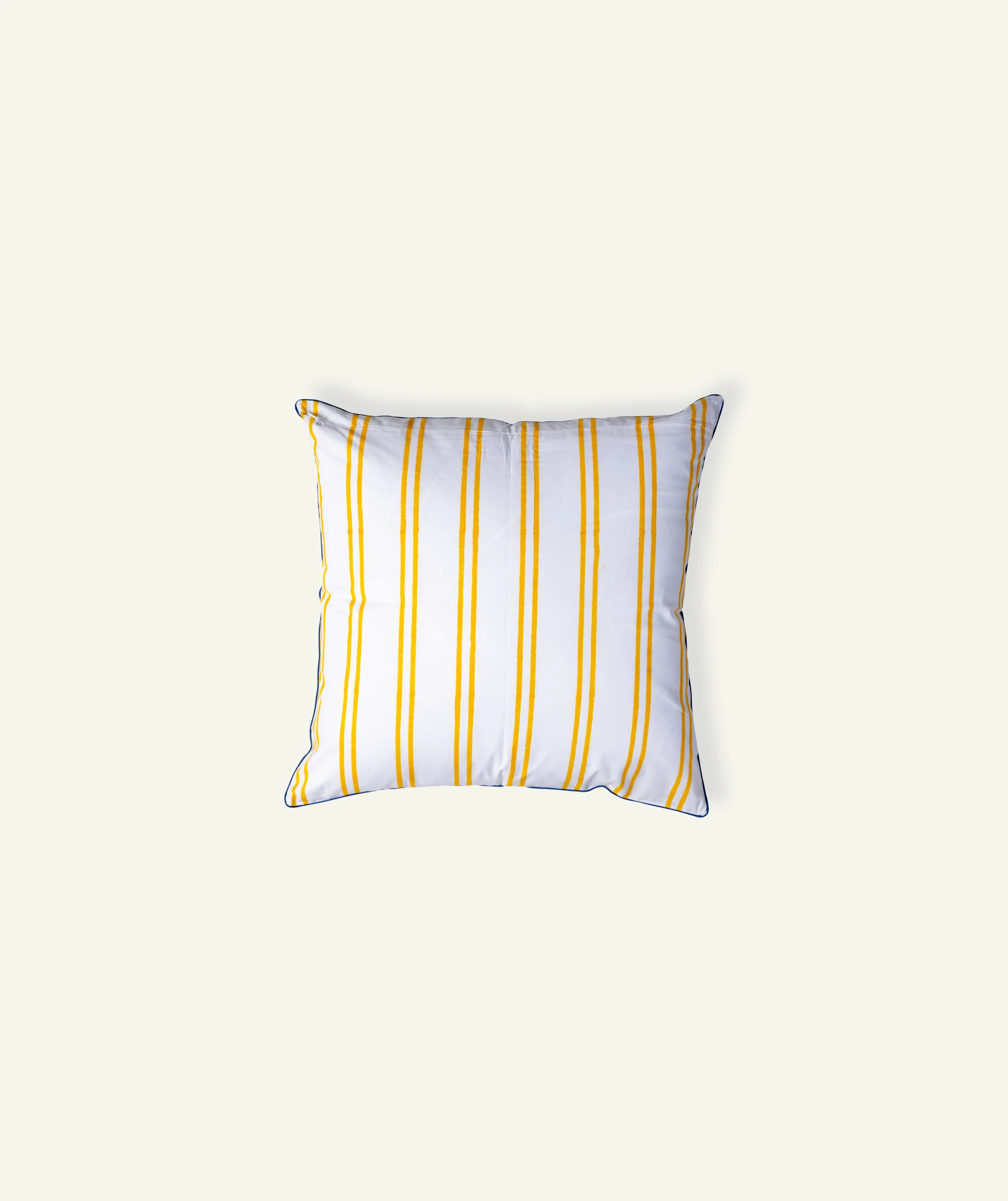 Mellow Yellow with Misty Blue Muted Layers, 18×18 Inch Cushion Cover