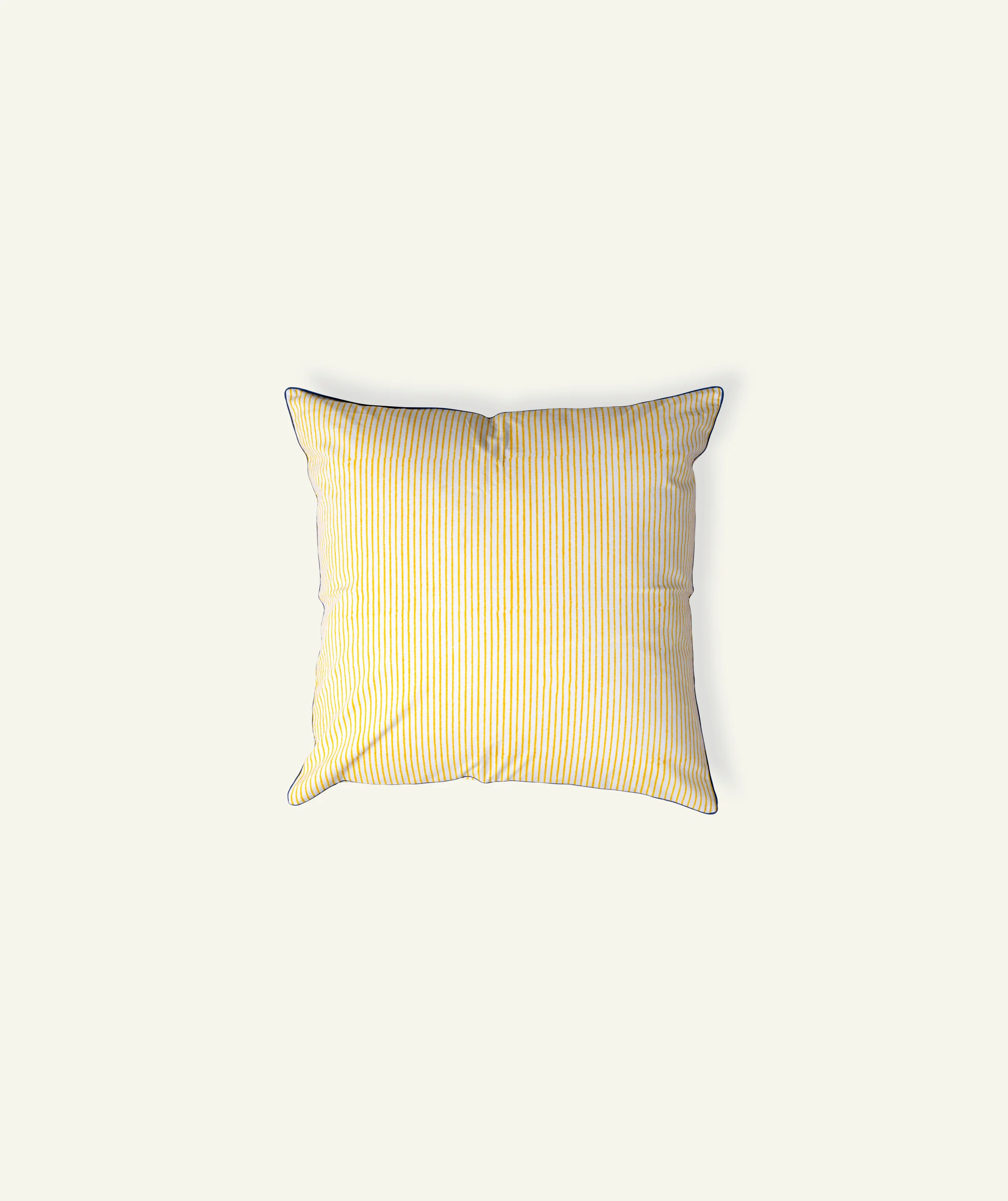 Mellow Yellow with Misty Blue Pure Stripes, 18×18 Inch Cushion Cover