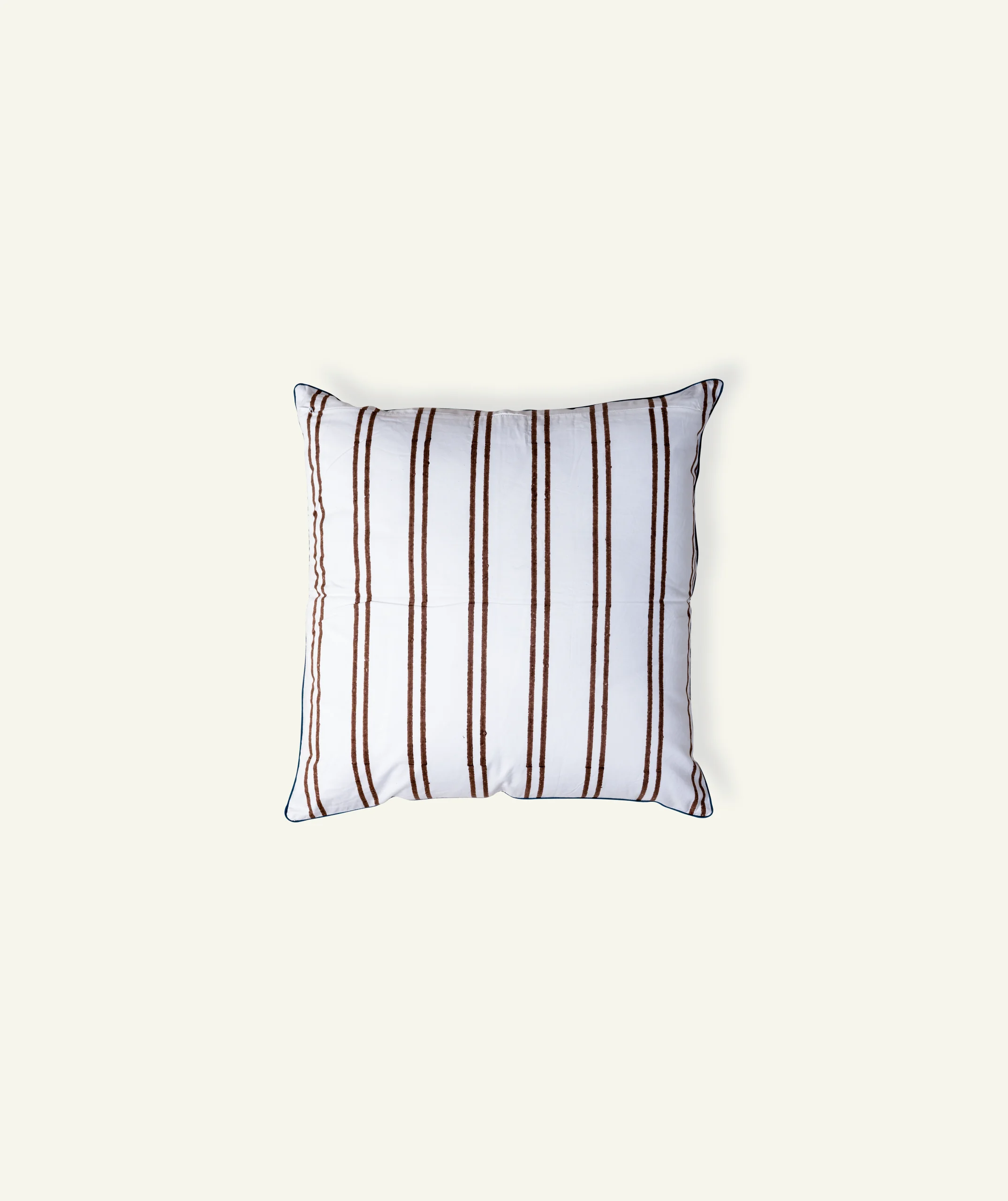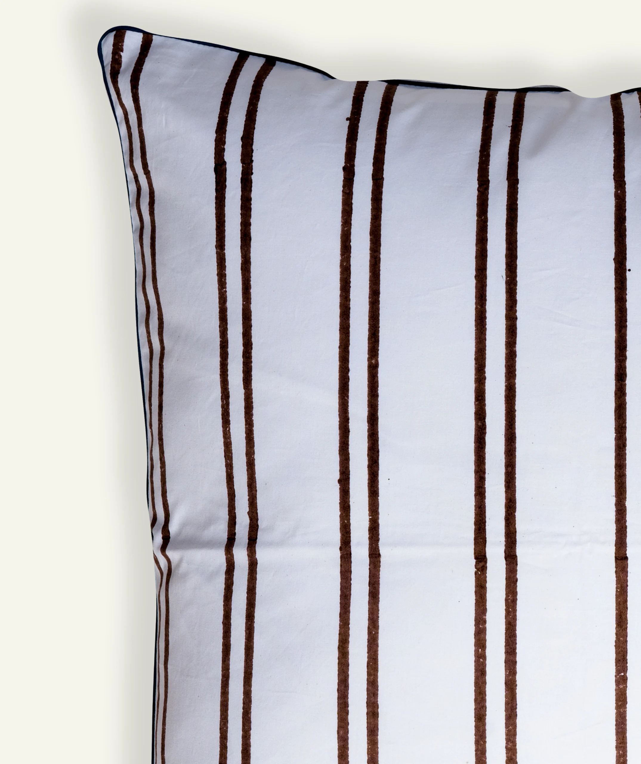 Mocha Brown with Haze Indigo Muted layers, 18×18 Inch Cushion Cover