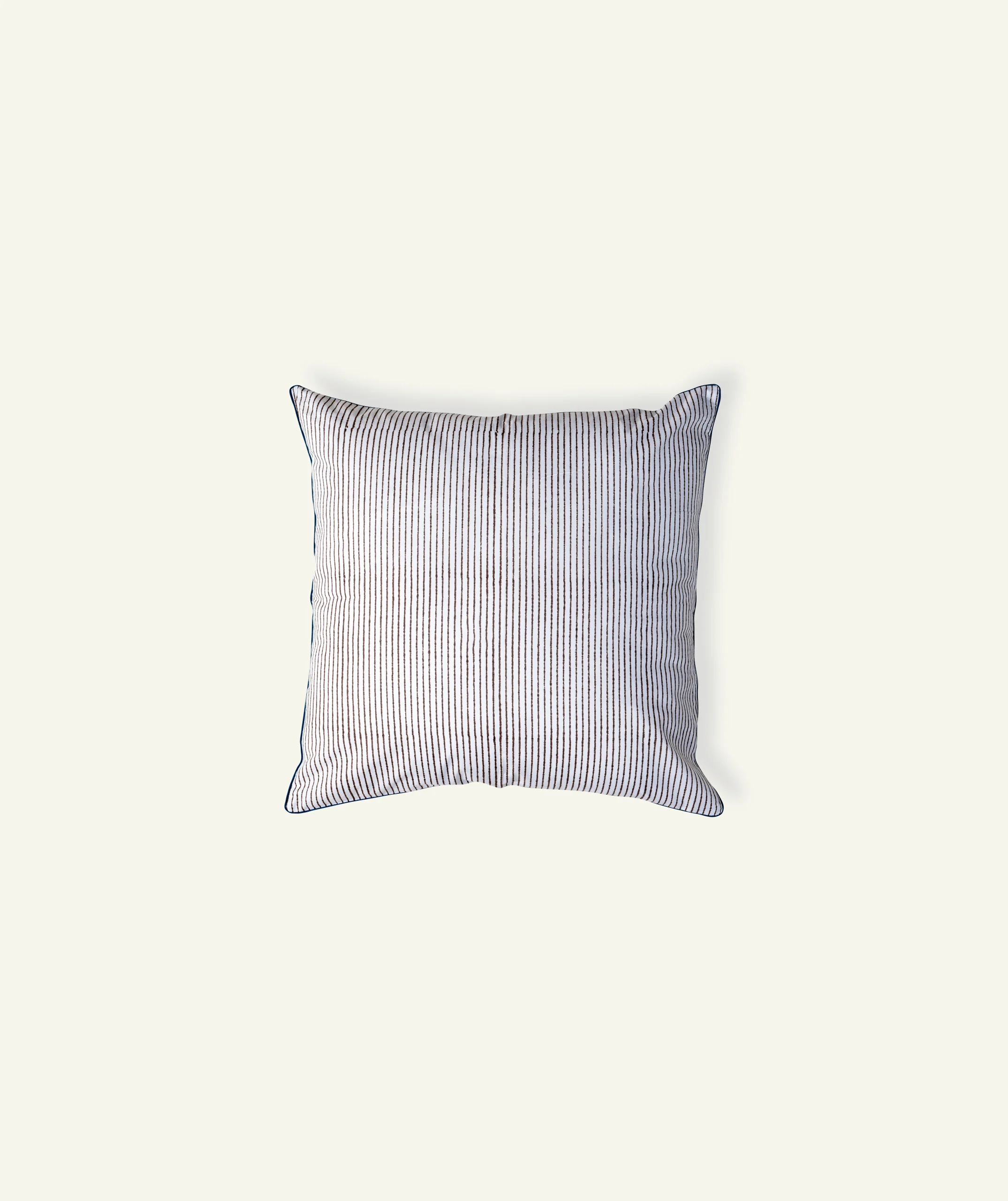 Mocha Brown with Haze Indigo Pure Stripes, 18×18 Inch Cushion Cover