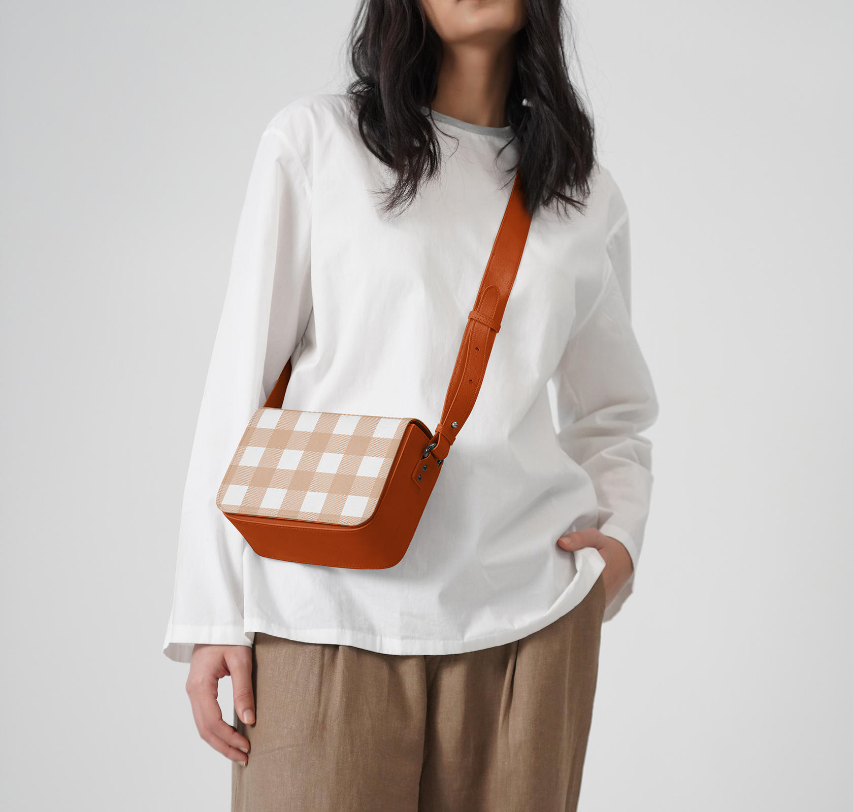 Rusty Pumpkin Gingham Sol Box Shoulder Bag