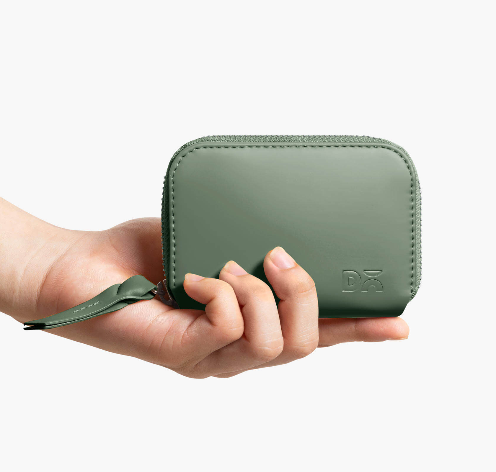 Vegan Leather Zipper Slim Card & Coin Wallet – Sap Green