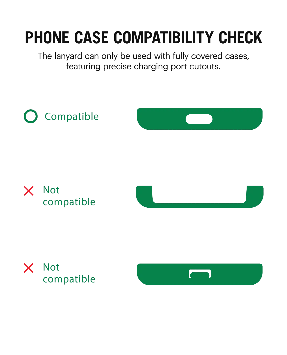 - Note 2: Phone case is not included with the lanyard.