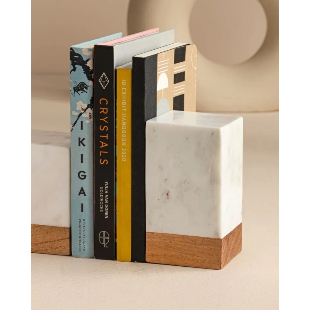 Marble Wood Bookends – Block (Set of 2)