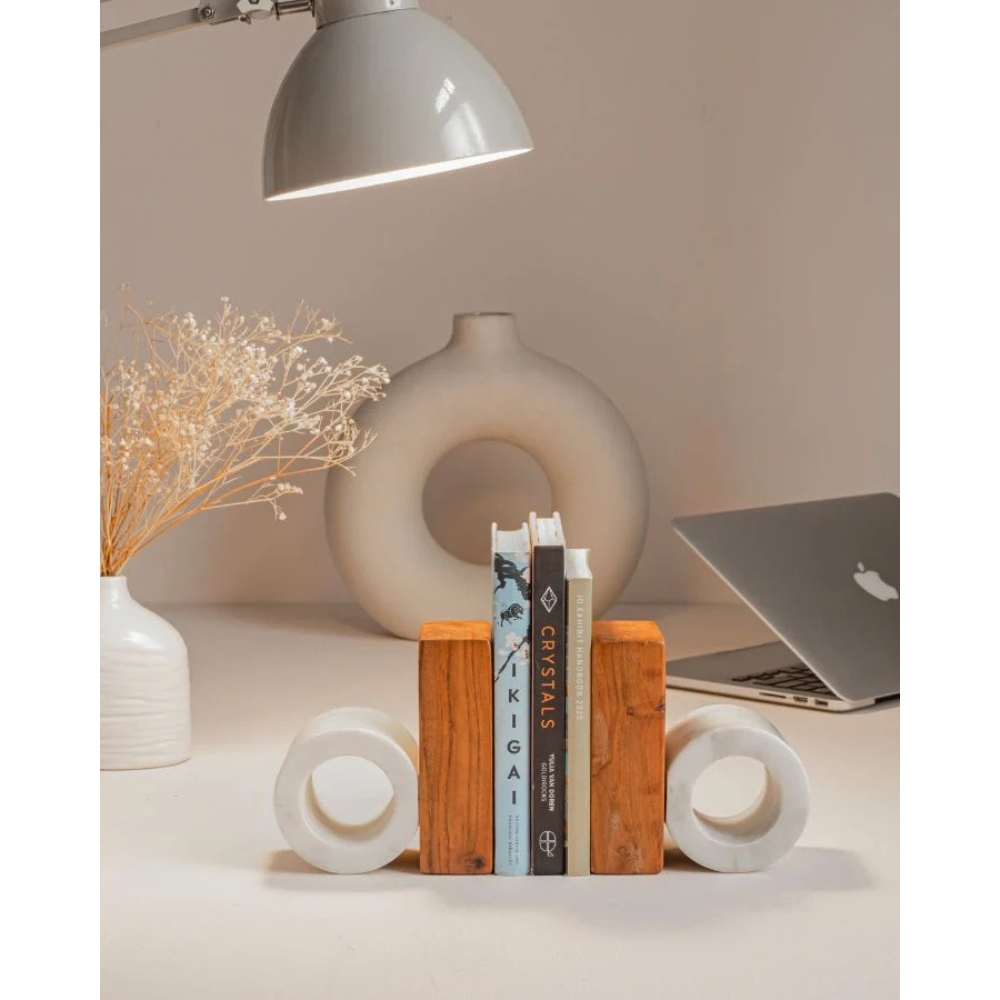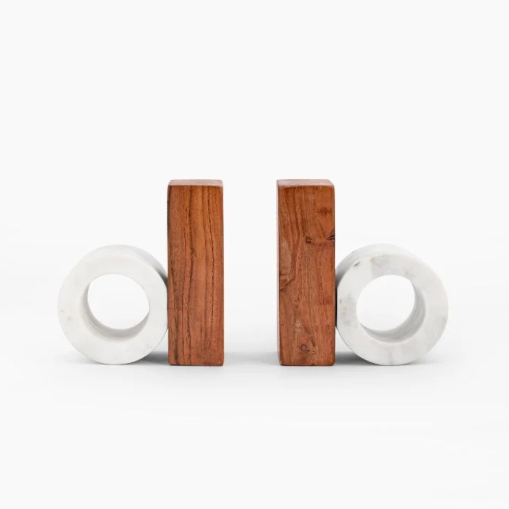 Marble wood bookends are made from natural marble and mango tree wood. These are beautiful pieces that will keep your book collection organized and also give your shelves an elegant look. The wood is also polished for a good look, while the marble is polished with clear hard wax.