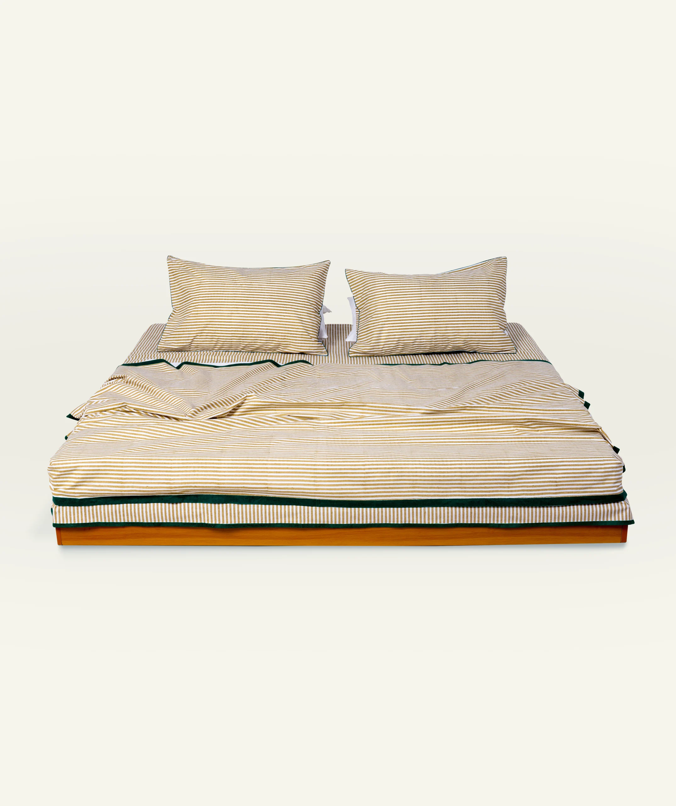 Wheat Beige With Pearl Green Silent Stripes Pillow Cover (Set of 2)