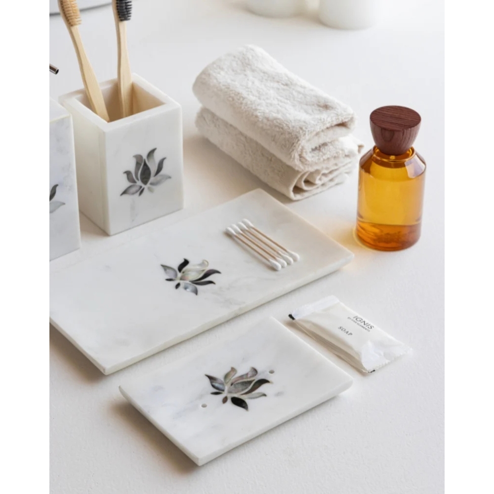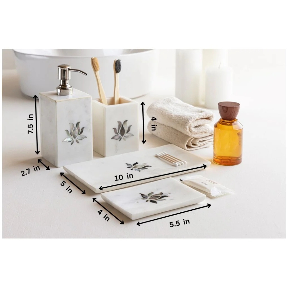 The natural beauty and craftsmanship of the Marble Bathroom Sets are a celebration. Each piece is a standout addition to any decor, whether it be modern minimalism or classic elegance, as genuine marble brings a unique touch to each piece by adding the delicate veining into each piece. Enhance your bathroom with our stylish bathroom set made from marble home decor items. These bathroom accessories add beauty and help keep your space organized. Not only is this complete set perfect to have on hand for yourself, but it also makes for an appropriate gift for a housewarming, wedding, or another special occasion.