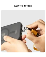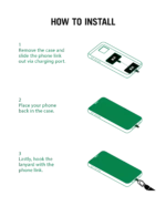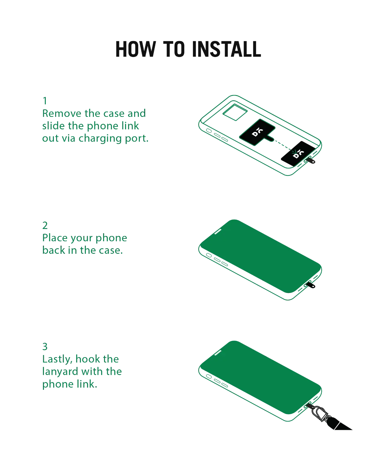 - For easy installation, remove the phone case and slide the phone link out through the charging port. Now, put the case back on and hook the lanyard with the phone.